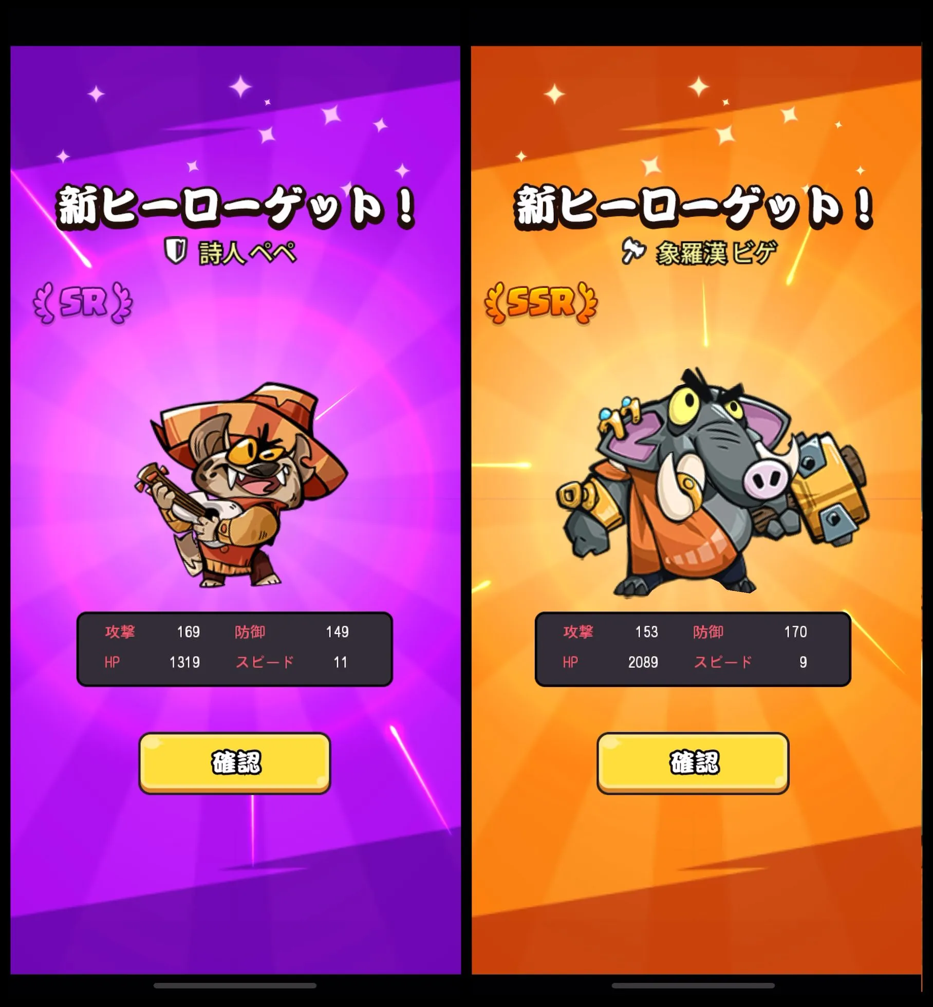 同じヒーローを複数入手して「星上げ」で強化したりと、