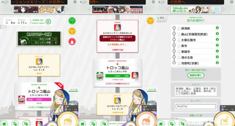 駅にアクセスして経験値を貯めてレベルアップさせたりと、
