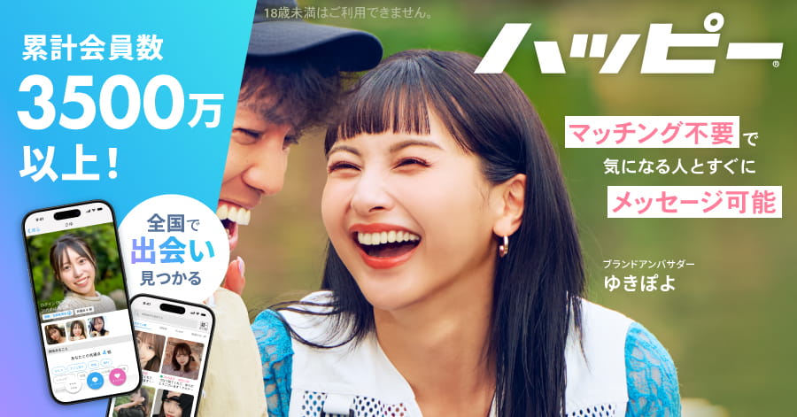 - 会員数3,500万人超の圧倒的な規模:日本最大級の会員数を誇り、幅広い年齢層・目的のユーザーと出会えるチャンスがあります。