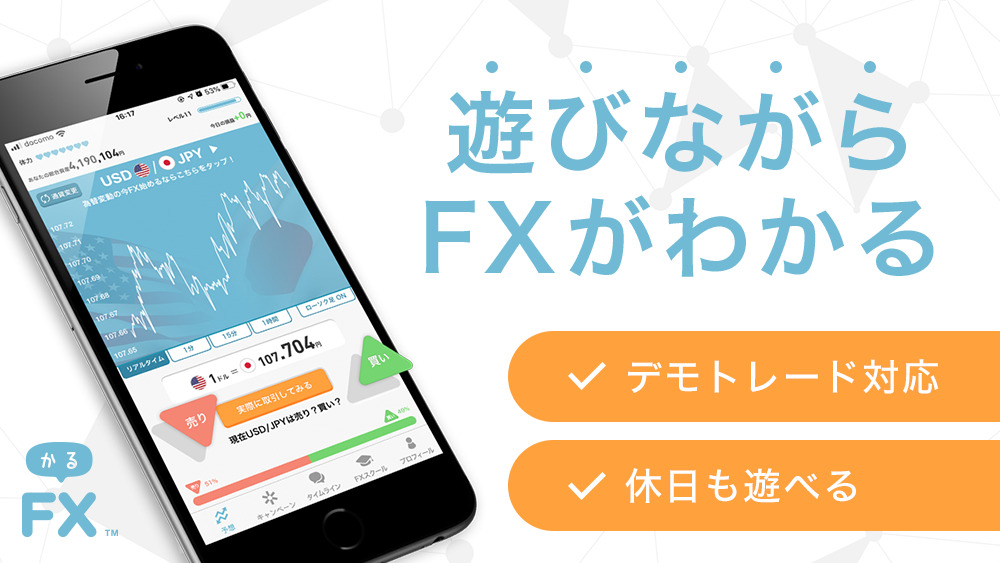 「かるFX」は、FXのデモトレードをゲーム感覚で体験できる無料のスマートフォンアプリです。