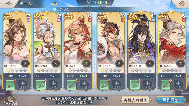 編成枠の育成段階は新しい英雄にそのまま引き継がれるため、